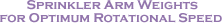 Unique to the Irrigation Systems Sprinkler, the rotational speed of the sprinkler can be increased or decreased by balance weights inserted into the sprinkler arm. The number of weights vary according to the nozzle size